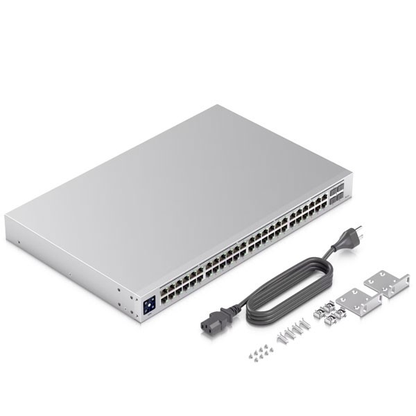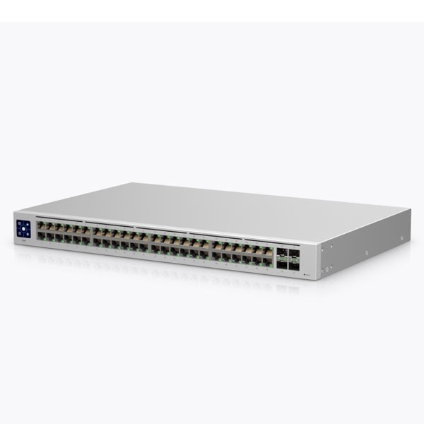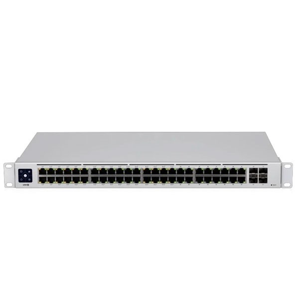 อุปกรณ์ Managed สวิตซ์ USW-48 ขนาด 48 พอร์ตกิกะบิต 10/100/1000 Mbps และ 4 พอร์ต SFP 1 Gbps รองรับการเชื่อมต่อสายไฟเบอร์ออฟติก บริหารจัดการได้ระดับ L2 ด้วยซอฟแวร์ UniFi Controller, มีหน้าจอทัชสกรีนแสดงผลการทำงานขนาด 1.3 นิ้ว, รองรับการติดตั้งยึดเข้ากับตู้ Rack ได้