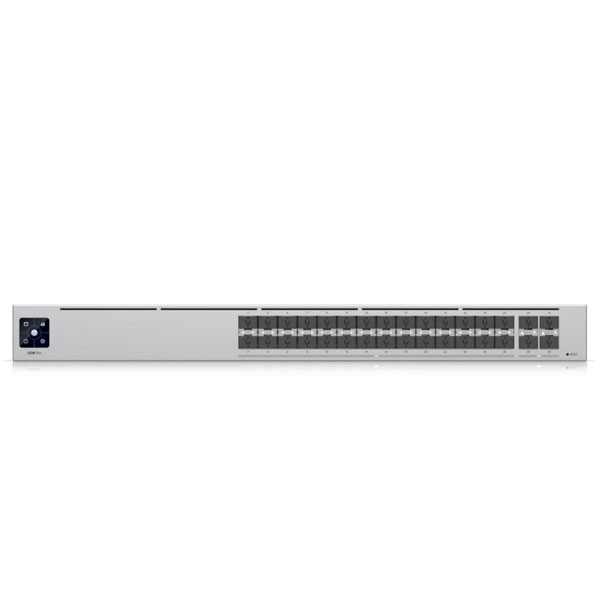 อุปกรณ์ 10G SFP+ Switch USW-Pro-Aggregation บริหารจัดการได้ระดับ Layer 3, มี 28 พอร์ต SFP+ ความเร็ว 10G และ 4 พอร์ต SFP28 ความเร็ว 25G รองรับการเชื่อมต่อสายไฟเบอร์ออฟติกโดยผ่านอุปกรณ์ SFP Module มี Touchscreen Display (1.3" LCM color touchscreen) แสดงสถานะการทำงาน, สามารถกำหนดการตั้งค่าและตรวจสอบการทำงานของสวิตช์ ได้จากทุกที่ โดยควบคุมผ่าน UniFi Controller