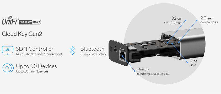อีกระดับของการพัฒนา Hardware UniFi Controller จาก UC-CK มาเป็น UCK-G2 มีขนาดใหญ่ขึ้นทำงานได้เร็วขึ้นกว่าเดิม 4 เท่า ด้วย Octa-Core CPU / 2GB RAM รองรับ Access Point มากขึ้นกว่าเดิมถึง 50 UniFi Devices มี Bluetooth ใช้เชื่อมต่อมือถือง่ายต่อการ Setup